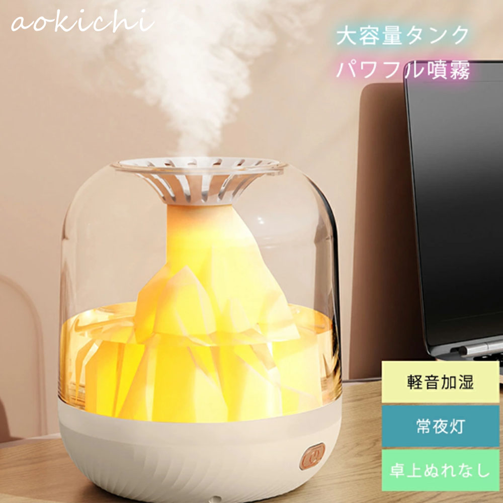 加湿器 寝室対応 7色LED搭載 大容量 タンク リモコン付き 音声操作 クラゲモード搭載 アロマディフューザー SNS話題 音楽連動オフィス用加湿器 火山デザイン