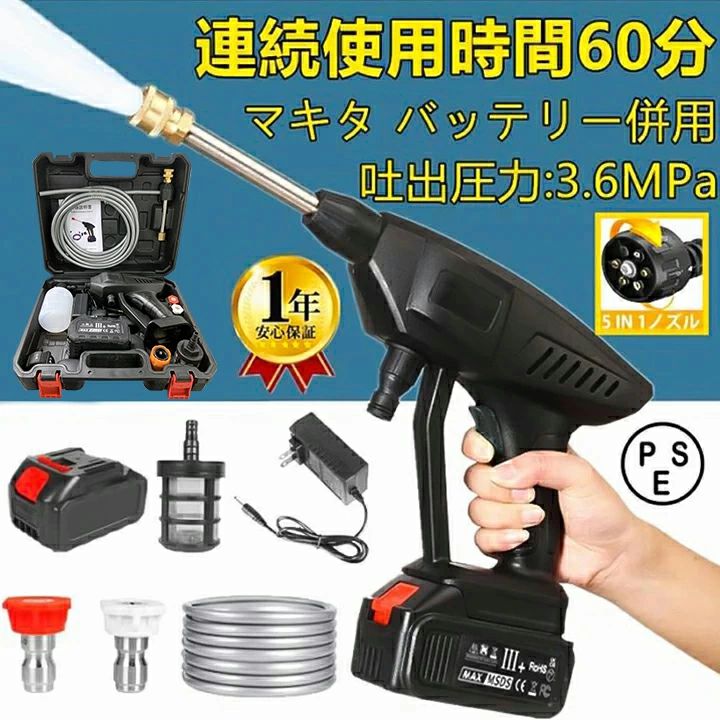 高圧洗浄機 マキタバッテリー互換対応 強力噴射 洗車機 タンク式高圧洗浄機 電動工具 家庭用 水圧 クリーナー 持ち運び便利 小型 庭 屋外 水道直掃除 年末大掃除 大晦日掃除 1年保証