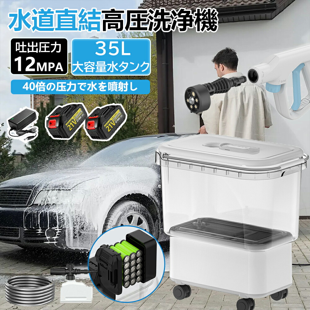 高圧洗浄機 タンク式 コードレス 充電式 コードレス高圧洗浄機 12MPa 電動 デュアルバッテリー電源 ペットボトル 6in1ノズル付き 35L 水道直結 長時間稼働 高圧洗浄 軽量 洗車 強力噴射