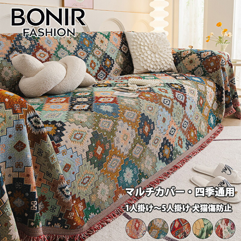 マルチカバー 北欧風 ソファーカバー ブランケット ソファーベッド ベッドスロー エスニック柄 幾何学柄 ペット対応 犬猫傷防止 フリンジ付き オシャレ 肘付き 洗える 丸洗いOK 汚れ防止 肘なし