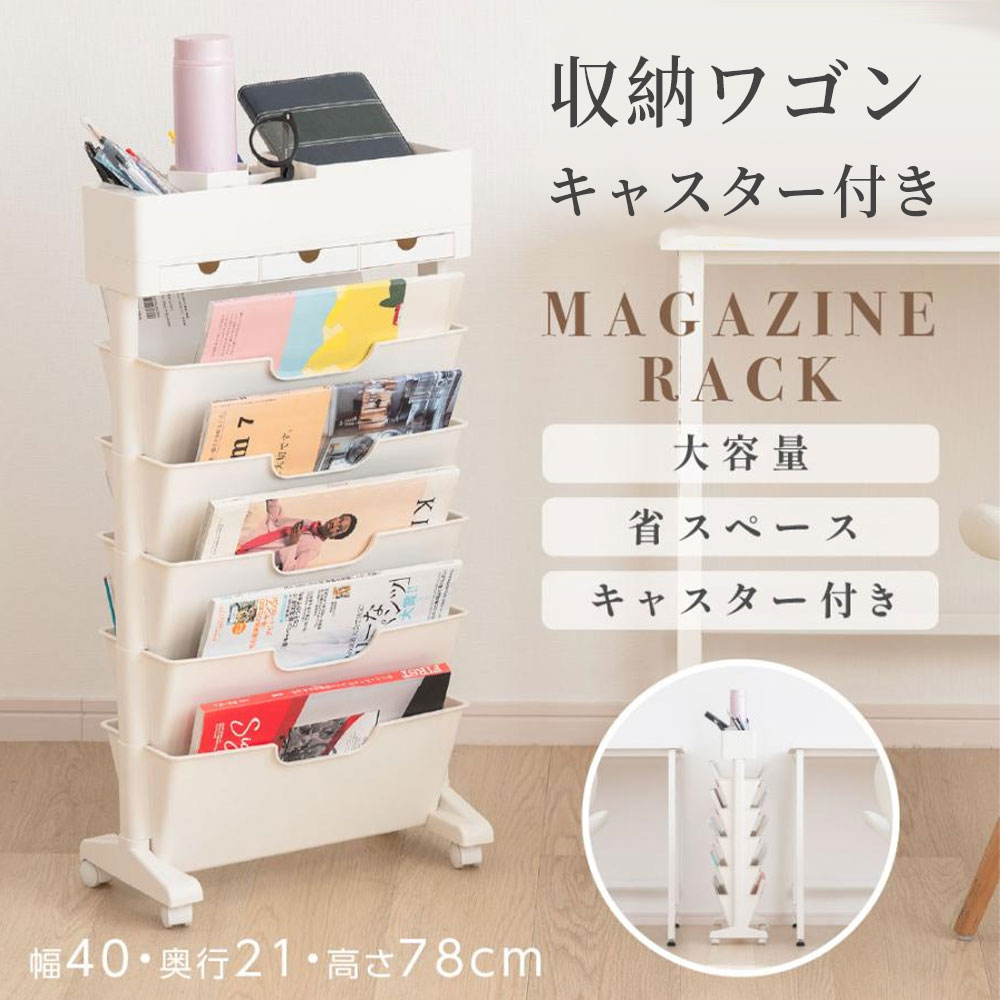 収納ワゴン マガジンラック デスクワゴン ファイルワゴン キッチンワゴン キャスター付き ロック機能付き 収納棚 収納 大容量 雑誌 本 書類 新聞 絵本 教科書 ボックス ラック ワゴン 収納ラック