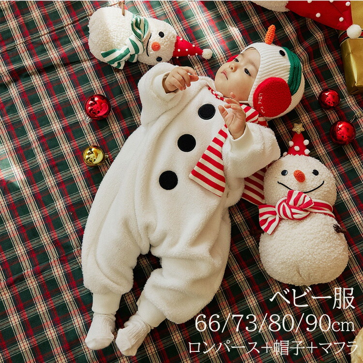 おしゃれでかわいい ベビー服 ロンパース ゆきだるま キッズ クリスマス服 きぐるみ ふわふわ 防寒 暖かい