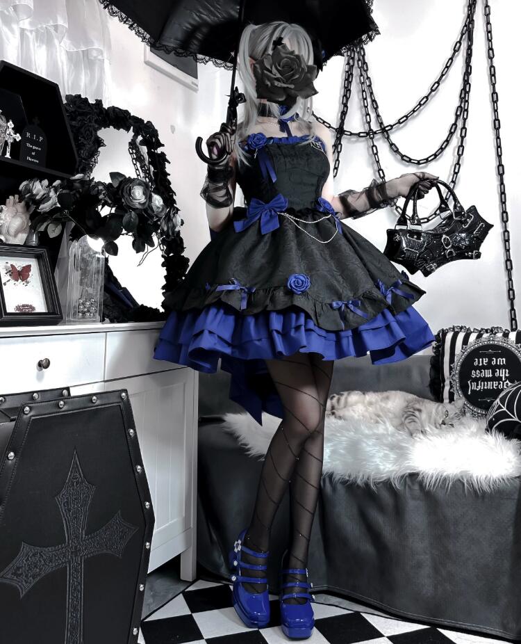 LOLITA ロリータ 悪魔ヴァンパイア 吸血鬼黒赤黒青 ワンピースJSK OP ゴスロリ コスプレ メイド服 コスチューム 文化祭 学園祭 衣装 ハロウィン 可愛い 日常写真舞台花嫁洋服ハロ 仮装