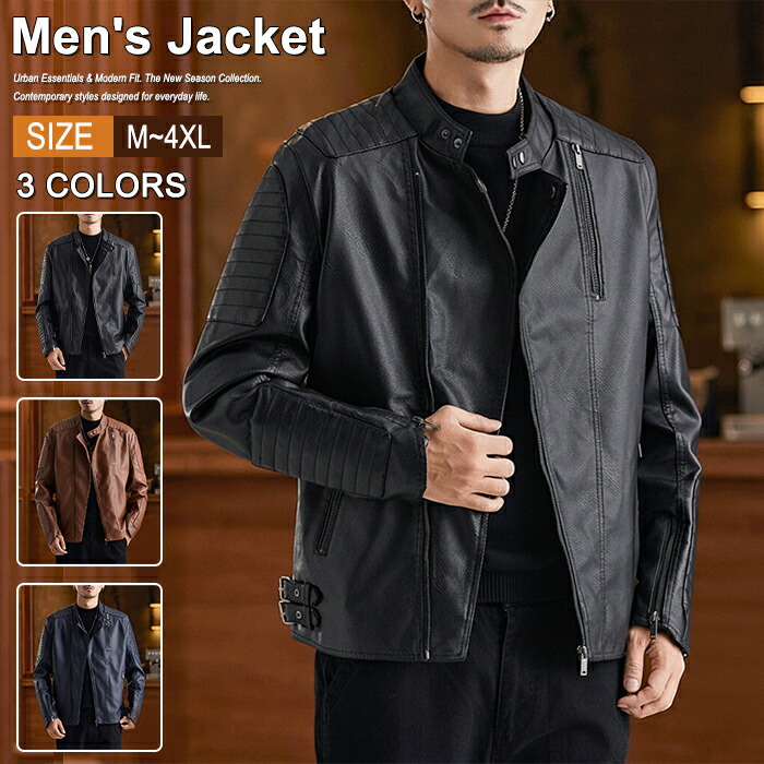 【レビュー特典】ライダースジャケット メンズ レザージャケット シングル 裏起毛 フェイクレザー 革ジャン アウター ブルゾン スタンドカラー 防寒 保温 秋冬 20代 30代 40代 50代